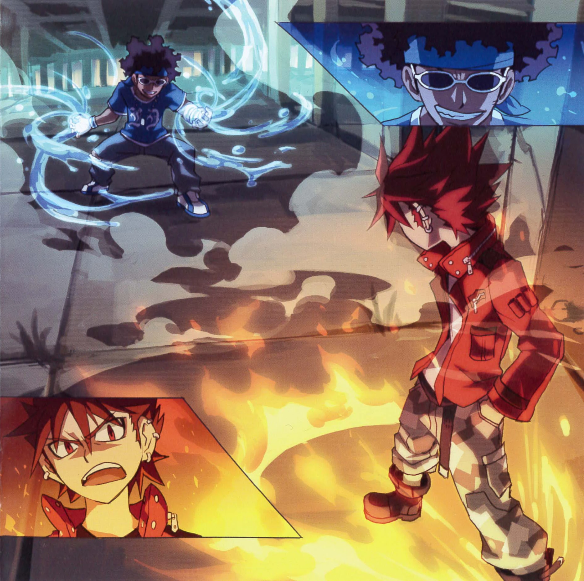 With some abilities, there appear to be Street Fighter series homages. The first Adept, an Azure Striker, being a lightning user from South America is reminiscent of Blanka (ブランカ), and depending on the translation Materials may reference his name with "Blan" (ブラン) cells and atoms. The Golden Trillion being described as a "Flame (Lucim)" (火炎) Septima in the Japanese version may also be a reference to Dhalsim (ダルシム), who wields fire. Adding to this, the Azure Striker and Golden Trillion are considered comparable abilities.