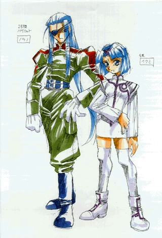 I made him tall and with a well-built body to give out a “reliable leader” (image), and by adding sunglasses I make him express a facet of “he never shows his will (to others)”. I also had in mind “that” American comic hero who’s the leader of a Super-Psychics squad. By the way, (Asimov’s) sunglasses are military stuff and bullet-proof. At the beginning (of the designing process) I drew a draft in which he was older, had short hair and a stubble but, taking into mind female reception (of the character) I turned him into a long-haired and effeminate man-style (character).