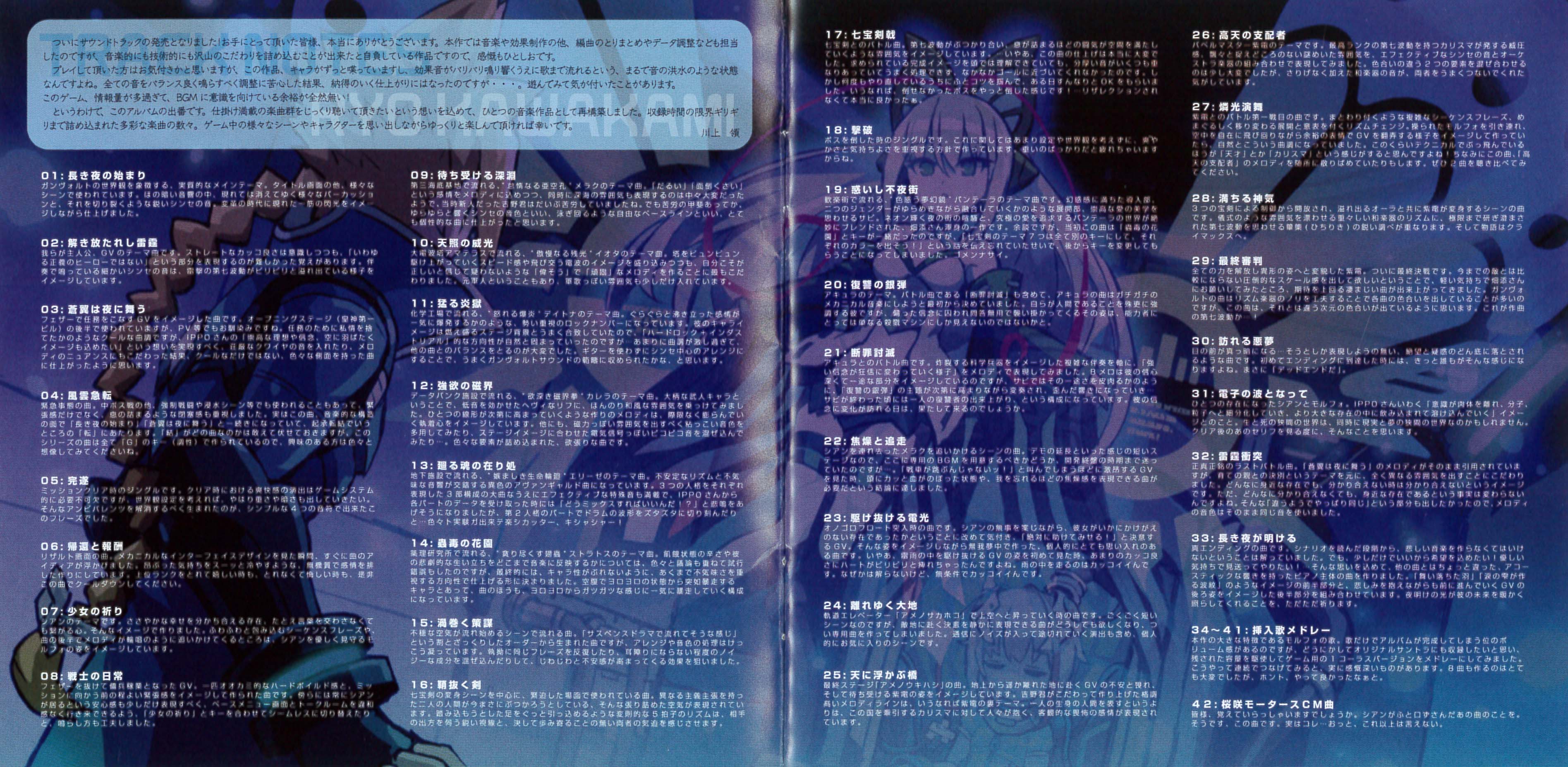 The track of the real final battle. The melody of Track 3* is used entirely here but using the theme of the farewell with the foster parent, I worked in bringing out a wholly different atmosphere. The image is that, no matter how close someone might be to you, there are times in which mutual understanding cannot happen. But despite that it doesn’t change the fact that this someone is very important to you. I also wanted to bring out this feeling of “they feel different but are actually the same” so the timbre of the melody uses the same sounds.