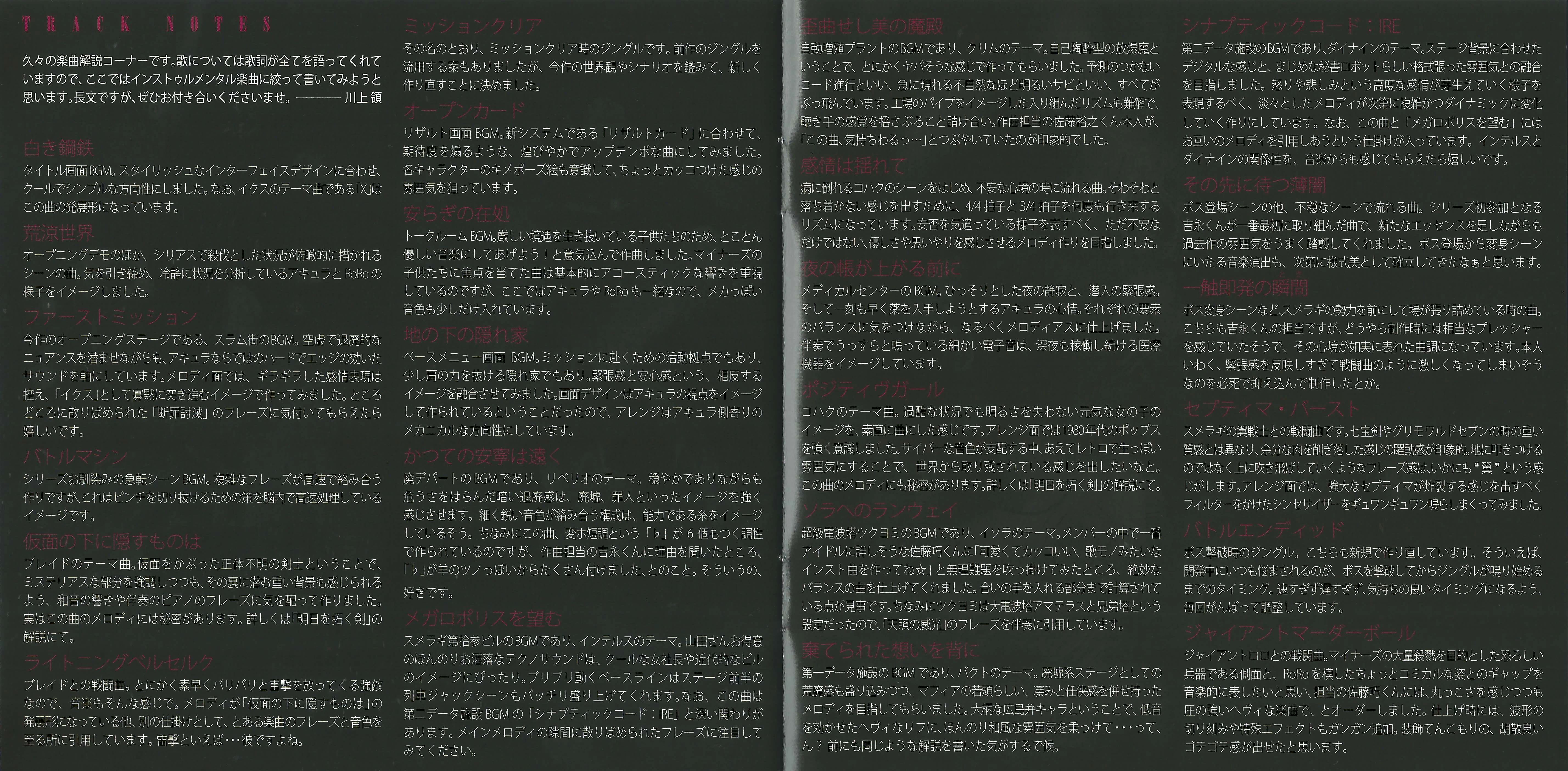 Sound master Ryo Kawakami's track notes:[1]