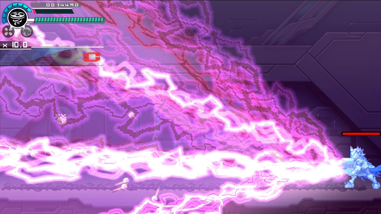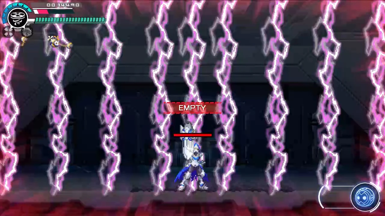 An SP Skill used in his second fight. The Creator teleports to both sides of the room, spraying a massive conical beam of electricity at Copen before teleporting to the middle and spreads electric orbs that transform into lightning bolts that rise from the ground and into the air leaving only small safe zones. |